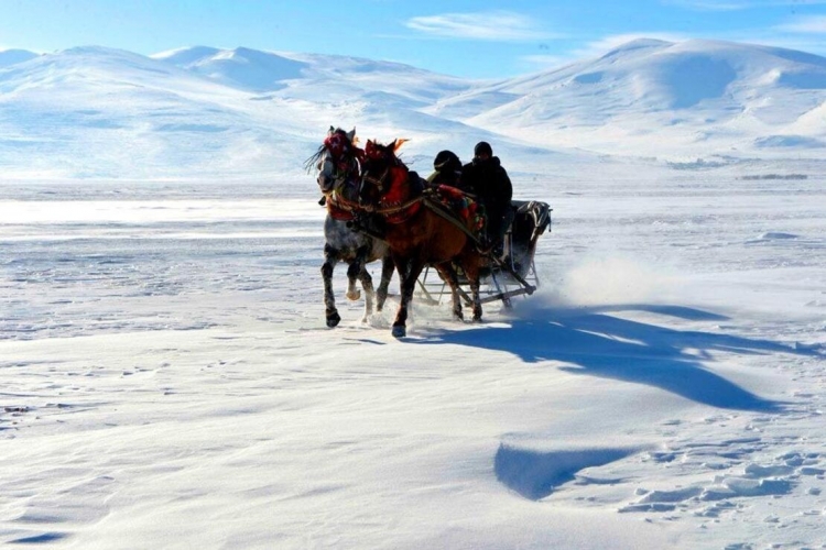 Çıldır Gölü deniz seviyesinden 1956 metre yükseklikte ve 25 kilometrekarelik bir alanı kaplamaktadır. Önce, gölün kendi balığı olan Sarı Balık’ tan öğle yemeğimizi alıyoruz. Yemek sonrasında buz tutmuş ÇILDIR GÖLÜ üzerinde AT KIZAĞI ile göl turu keyfini yaşıyoruz. (ektsra)