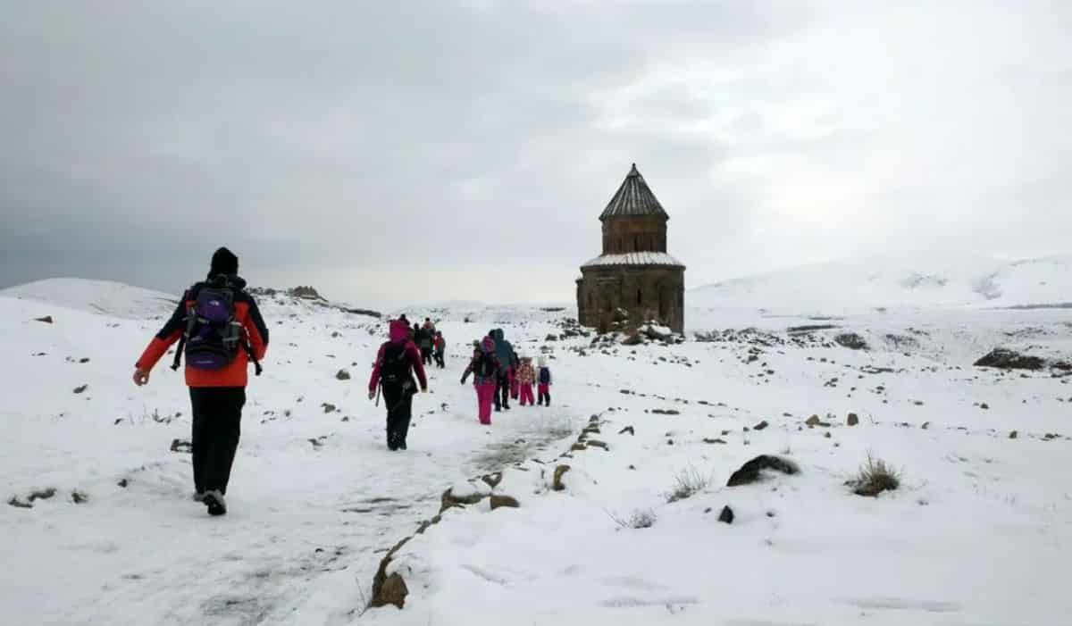 Turumuzun ilk günü 15 ocak perşembe günü sabah saat 10:00 da Ankara Esenboğa Havaalanında buluşuyor ve saat 11:55 de olan karsa uçağımıza binerek yaklaşık1:30 saat sonra kars merkeze iniyoruz.Ardından Kars merkezdeki gezimize başlıyoruz. Kümbet Cami olarak bilinen Oniki Havari Kilisesi, Ebu-l Hasan Harakani Türbesi, Osmanlı hamamları ve Kars Kalesi' ni gezdikten sonra Kars Arkeoloji ve Etnografya Müzesi' ni ziyaret ediyoruz. Ardından vatan şaiirimiz Namık Kemal' in dedesiyle bir süre yaşadığı yer olan evi görüyoruz. Sonrasında Çarlık Rusyanın 40 yıllık yönetimi altında geçen sürede inşa edilen yapıları görüp, Kars Kanlı Tabya Müzesi' ni geziyoruz. Sonrasında Kaz etinde oluşan yöresel menü ile öğle yemeği için mola veriyoruz. Yemek sonrası peynir vs. için alışveriş için serbest zaman veriyoruz. Kars eski yerleşim yerini, 1877-78 Osmanlı-Rus savaşından sonra yaklaşık 40 yıl boyunca Rus yönetiminde kalan şehirde Ruslar, Tahtdüzü denilen mevkide Baltık üslubunda binaların bulunduğu ızgara planlı yeni bir şehir kurmuşlardır. Yapacağımız şehir turunda hala kullanılmakta olan yapılardan Vali Konağı, Defterdarlık Binası, Demir Köprü, Hekim Evi (Opera Binası), Alexander Nevski Kilisesi (Fethiye Cami) ve Gazi Ahmet Muhtar Paşa Konağı göreceğimiz yerler arasındadır. Daha sonra bu güzel gezimizi güzel hatıralar ile burada sonlandırıp,Sonra 2 gece konaklama yapacağımız Otel’ e gidiyoruz. Akşam yemeği ve konaklama. Yemek sonrası dileyen misafirlerimiz ile Kars’ ın karla kaplı sokaklarında gece yürüyüşü yapıyoruz.